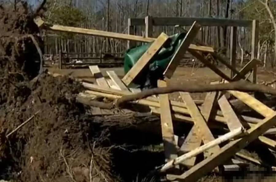 房屋突然倒塌,主人帶著孩子躲進柜子。因為門開了,加上窗戶玻璃破碎,這樣形成了對流,不到一分鐘時間,寵主住的木屋就倒塌了,看到情況不對,寵主帶著孩子躲進了柜子里。因為當時很害怕,鏟屎官并沒有帶著狗狗一起躲進來,結果風停了后狗子不見了,鏟屎官跟小主人在房子里拼命找,但都一無所獲。