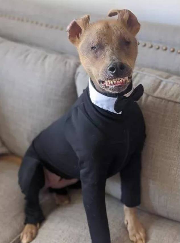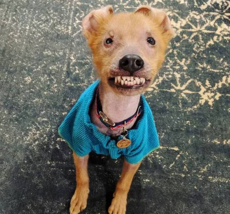 小狗時期雖說沒什麼「盛世容顏」,但至少像個小奶狗,可是它長大后完全變了個模樣,甚至帶狗出去遛彎,都有人問寵主,問他為何領養一只這麼丑的狗。