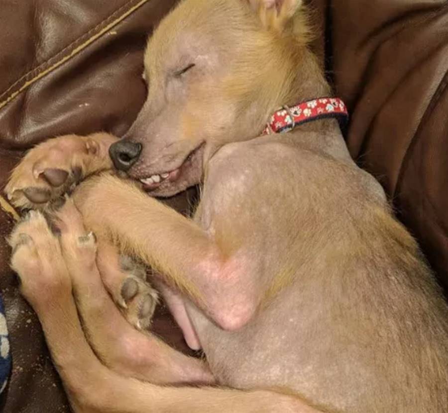 可是,在領養小狗3個月后,主人發現狗狗身上的毛發越來越少,過去笑起來時很甜,然而現在像個猥瑣大叔。
