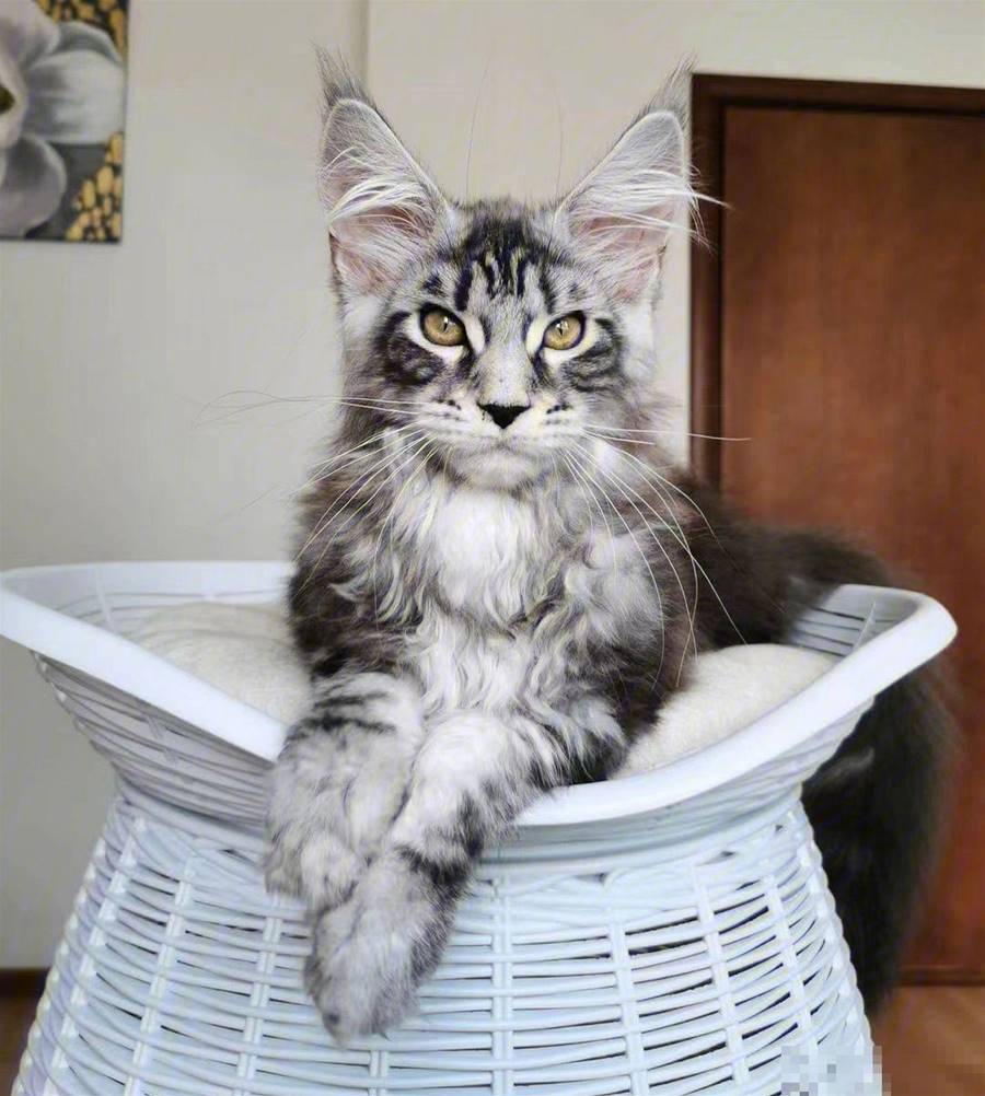 緬因貓原產于美國緬因州,是一種大型的運動貓咪,它們長相嚴肅,看上去一副不可侵犯的樣子,但其實性格溫柔,很適合家養。