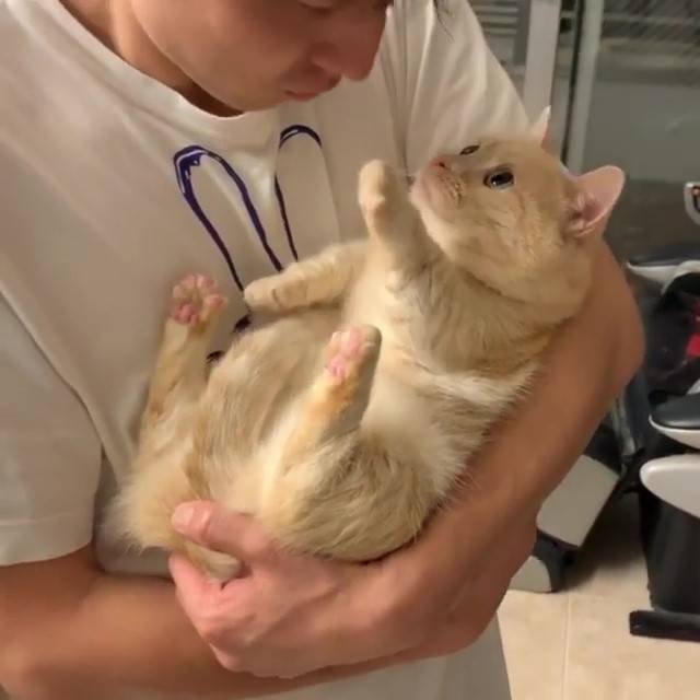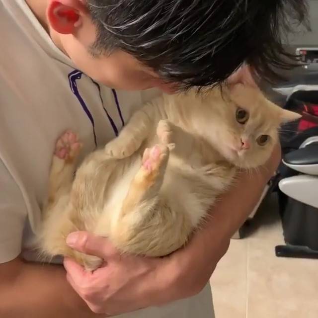 ▼貓咪溫柔拒絕把拔親親:
