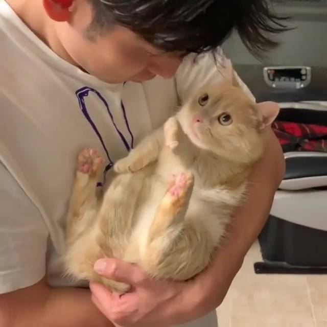 網友們看到這段影片紛紛表示:「這隻溫柔系的」、「小短腿太迷人了」、「我只注意到牠的粉紅肉球」、「舉手say no」、「一直舉左手好可愛」、「一點都不兇啊」、「喵:先…先不要」。把拔那麼愛玩,myu只能一直舉著左手,時間久了手也會酸,牠無奈的表情太可愛啦~