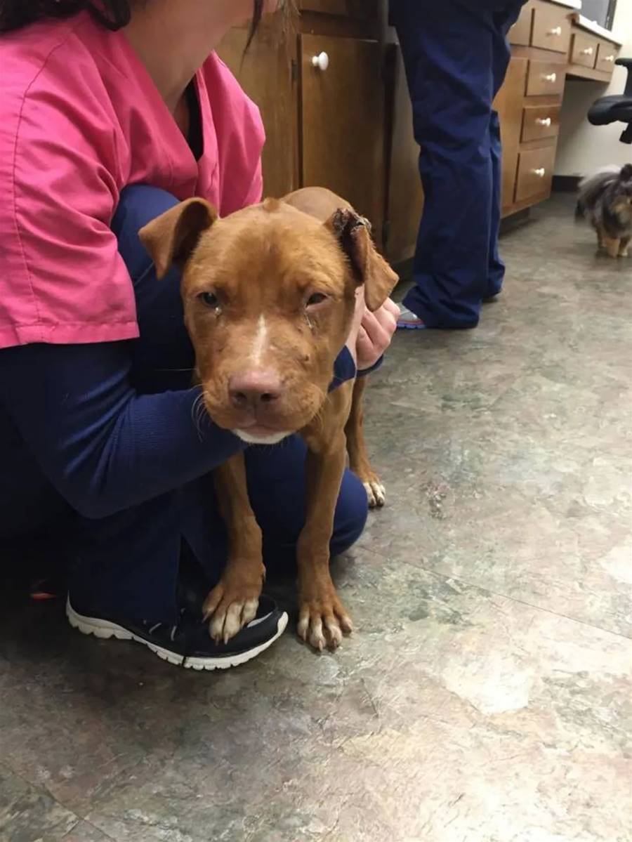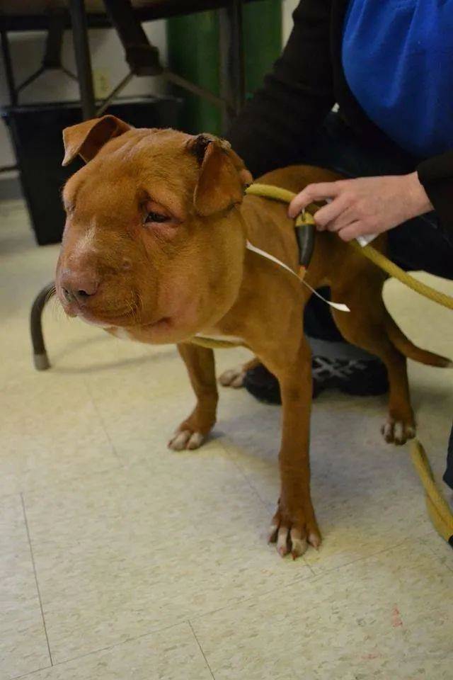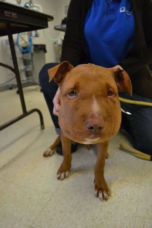 因為小狗骨瘦如柴,頭部卻異常腫大。