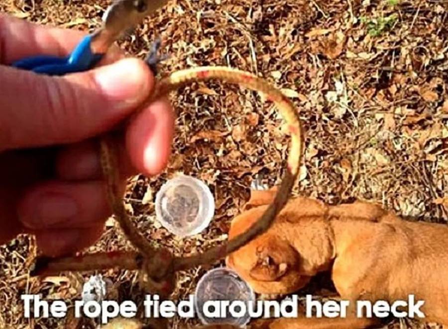 發現有一根發圈大小的繩索緊緊的勒在它的脖子上。
