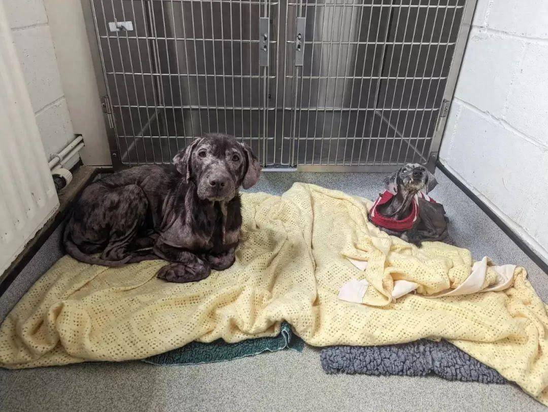 狗狗Poppy和Willian在街頭游蕩被人發現時,幾乎都看不出是狗狗了,它們瘦成了皮包骨,身上的毛發所剩無幾...