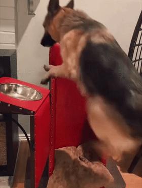 因為巨食道癥要用貝利椅吃飯的小德牧...