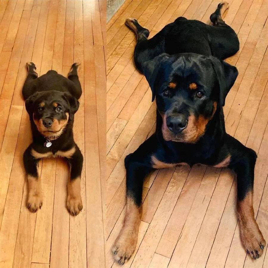 這種小時候和長大后的同框對比,真的很觸動人,任時光流逝,也只是小狗狗變成了大狗狗,其他其實什麼都沒有變!