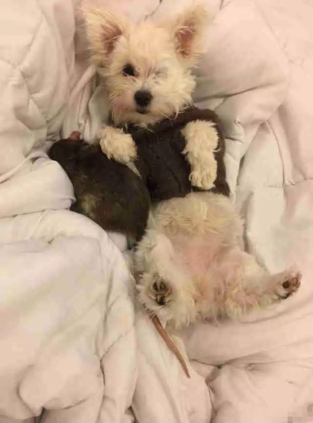 在美國紐約,有一只叫艾瑪的狗狗,它去年被主人維格納從收容所帶回了家,從那之后,艾瑪不僅有了主人,還有了3只老鼠小伙伴。