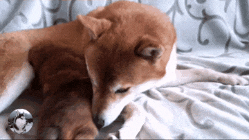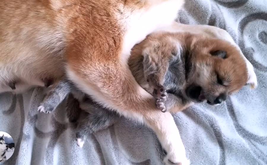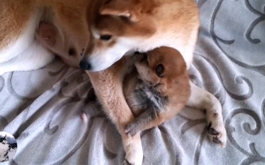 看到柴犬一直壓著小奶狗,主人擔心會把奶狗壓傷,她告訴毛孩子自己不抱走小狗了,柴犬就像聽懂了主人的話一樣,馬上就松開了孩子,然后把奶狗拱到自己肚子下面。