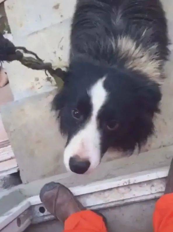 狗狗看到主人的那一刻,別提有多開心了,眼圈早已浸滿了淚水,心里的委屈也瞬間釋放出來,趴在地上讓主人解開身上的繩子和樹條。