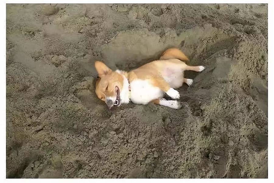下一刻狗狗的動作讓主人驚呆了,狗狗挖好了之后直接就躺了下去這安逸的樣子讓主人哭笑不得主人一看這樣都不知道該不該叫醒狗狗了。