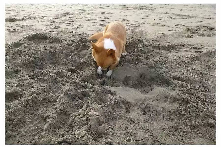 狗狗們特別的喜歡刨東西這不這只狗狗正是在一刻不停的刨著沙子呢!它的主人在旁邊看得目瞪口呆因為他也不知道他家的狗狗到底要干什麼。
