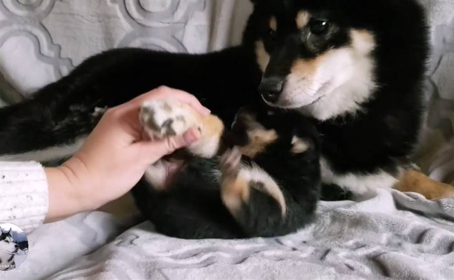 柴犬的表情看起來很嚴肅,畢竟第一胎的奶狗都沒了,第二胎卻只有一只,當媽的肯定是不希望孩子離開自己,再說了奶狗還很小,狗媽對奶狗還有很強的保護欲。