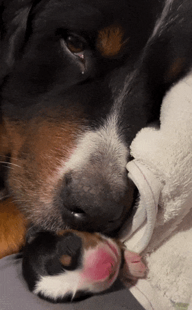 還有這個狗寶,看媽媽在主人懷里,就也想上去玩,結果就被親媽兇了...