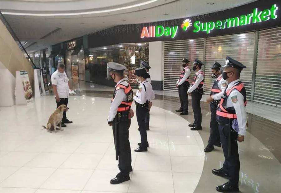 工作人員還給狗狗取了名字,它現在叫Dulor,主要負責商場周邊的治安,平時跟同事一起巡邏,工資就是一些狗糧跟罐頭。