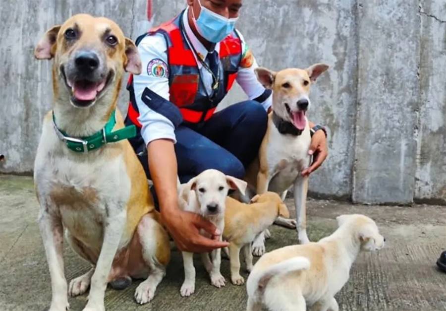 3只小狗看起來很瘦,應該是長期缺乏食物的緣故,不過已經有三四個月大了,看到自己孩子都在身邊,Dulor開心壞了,總是時不時看著這些小狗。