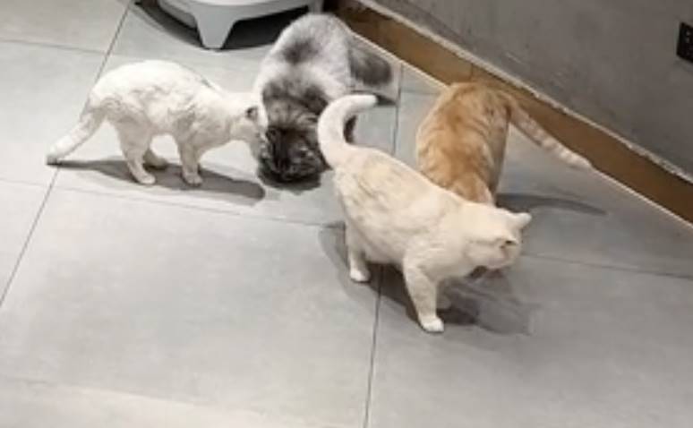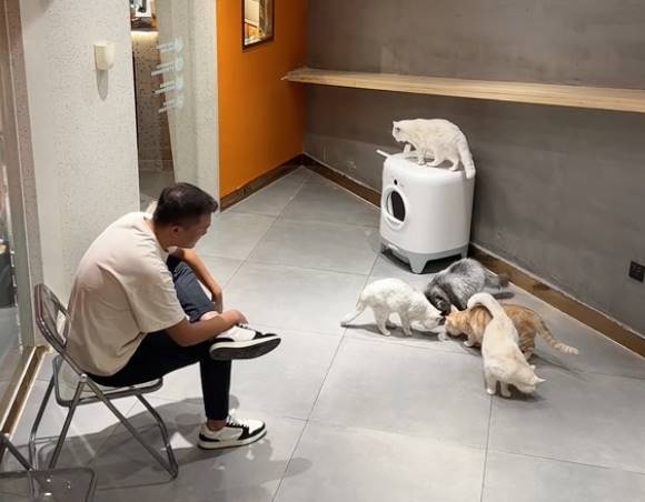 但面對著老闆的苦口婆心,小貓咪們主打就是一個愛答不理,你說你的我吃我的,沒一個把老闆當回事的。