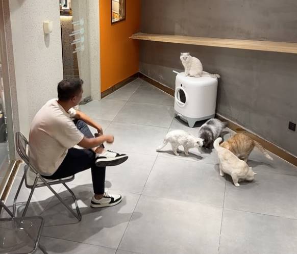 但被點名的小貓并未把老闆的話當回事,甚至連個眼神都沒給。