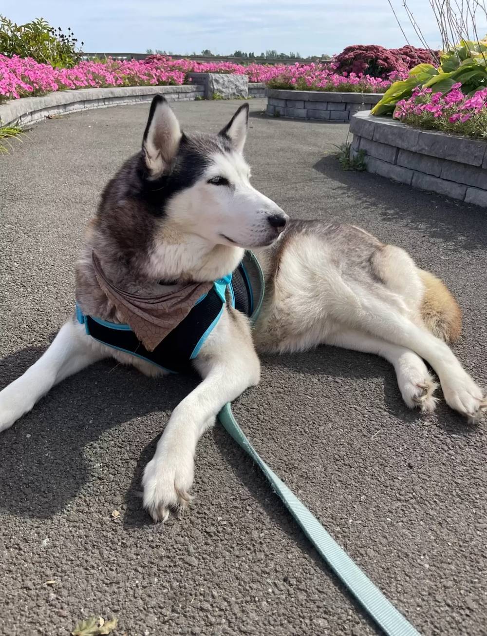 幾年前,加拿大情侶Amanda Killen和Phil準備養一只新狗狗,他們一眼就看中了Sakari。當時Sakari的生活環境非常糟糕,它一天中的大部分時間都跟其他40只狗狗擠在一起,空間狹窄、戶外活動不足,幸好當地的動物保護部門將它們救了出來,Sakari也有了開啟新生活的機會。