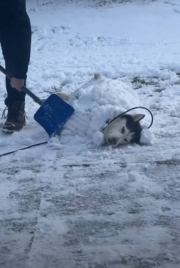 Sakari非常喜歡雪,跟Amanda和Phil一起玩雪,是它最開心的時刻,它會在雪地里打滾,還會躺在家人為它建造的雪堡中,待一整天都不會覺得無聊。
