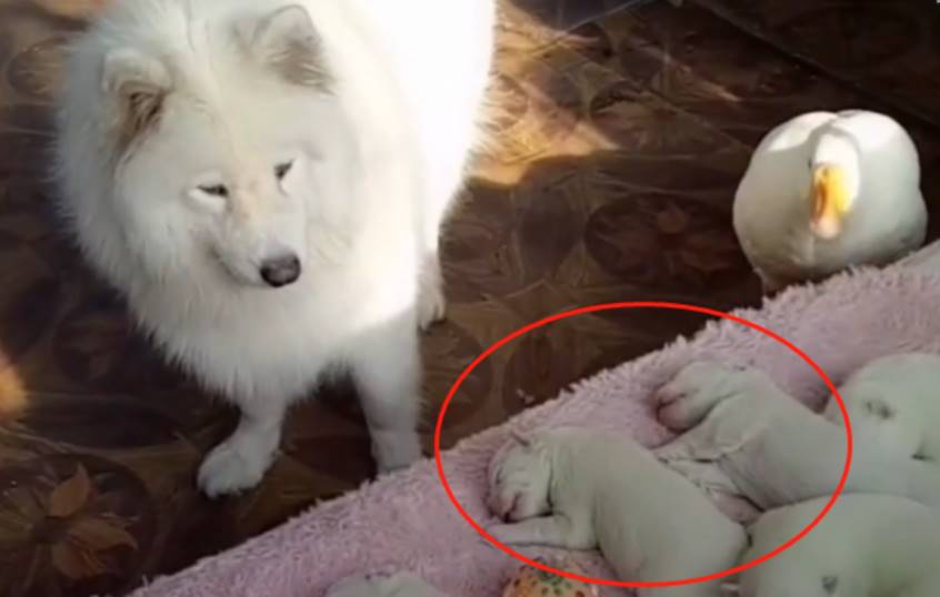 在家里橫行霸道的大鵝有時連主人都怕,狗媽很郁悶,自己的孩子卻不能靠近。