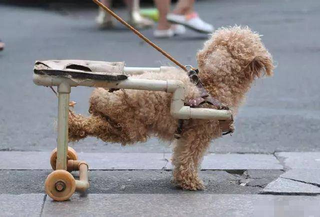 我看著狗狗真的好不忍心啊,比較也是我的錯誤,所以抱起狗狗又回去開車,帶著狗狗去了最近的醫院,因為送來的時間還是晚了,來來回回治療了一個多月,也做了手術,但是小泰迪最后還是殘障了,還截掉了一部分后腿。後來我把狗狗帶回了家,我老爸手巧,自己設計給小家伙做了一個小輪椅,一開始小家伙因為跟我不熟,也不適應輪椅,又被主人拋棄,每天悶悶不樂,後來一家人照顧它,小家伙不僅接受了輪椅,更接受它新的家人!