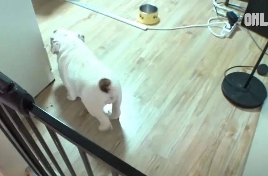 但在這個家里,有一只斗牛犬卻非常特殊,在別的狗子吃飯的時候,它只能在柵欄外面看著。