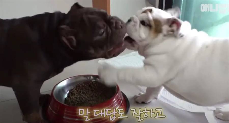 平時,幾只可愛的斗牛犬就生活在一起,一起嬉戲,一起吃飯。
