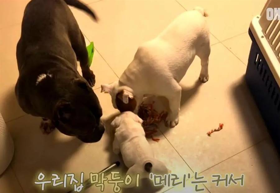 在韓國,一戶人家因為特別喜歡斗牛犬,一口氣養了好幾只。其中有一只顯得很特別!