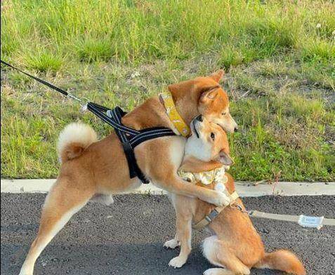 見到正妹把持不住!雲林北港有隻色瞇瞇柴犬「Choco」,日前散步時遇見同為柴犬的「Q比」,沒想到,當牠一看見甜美可愛的Q比時,居然直接上前將這隻少女柴「抱緊處理」,散發出濃烈的粉紅泡泡,當場閃瞎媽媽。