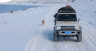 當天一行人離開冰川后,一路驅車趕到50公里外的一處溫泉處休息,天亮時,鏟屎官發現了大黃,它不知什麼時候跟著車從冰川上追了下來。