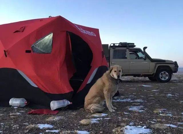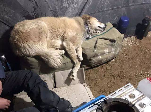 從那根火腿腸之后,這只狗就賴在了鏟屎官身邊,鏟屎官上冰川,狗狗也跟著,晚上時狗狗就在鏟屎官的賬篷外,臥雪而睡。