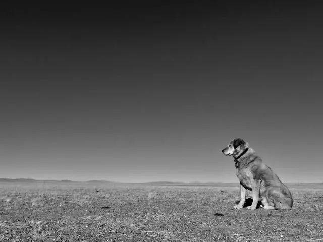 無人區的冰川上發現一只狗
