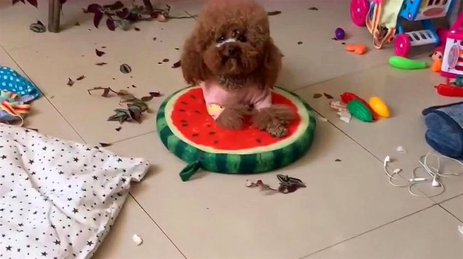 護食這一點,我就不打算繼續糾正了,就讓它這樣吧,沒想到,它又開始拆家了,可能是年紀小,好奇心大吧,那時候醫生說它大概是五六個月大,但是后面我養了五個月了,也一歲了,該成熟了吧,它不僅沒改,而且拆的更猛了。