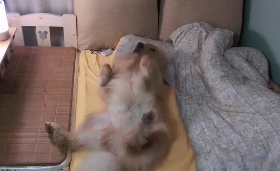 小哥雖說自己是租房子住,但因為很喜歡金毛,就花「巨資」買了一只,因為小狗到了陌生環境很會叫,主人就讓它睡旁邊。
