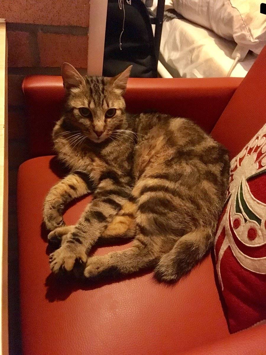 虎斑喵就這樣在Maya家待了一段時間,原本以為牠要從窗戶離開了,沒想到又跑回床上睡覺、和夫妻倆共度幸福溫馨的午休時間XD