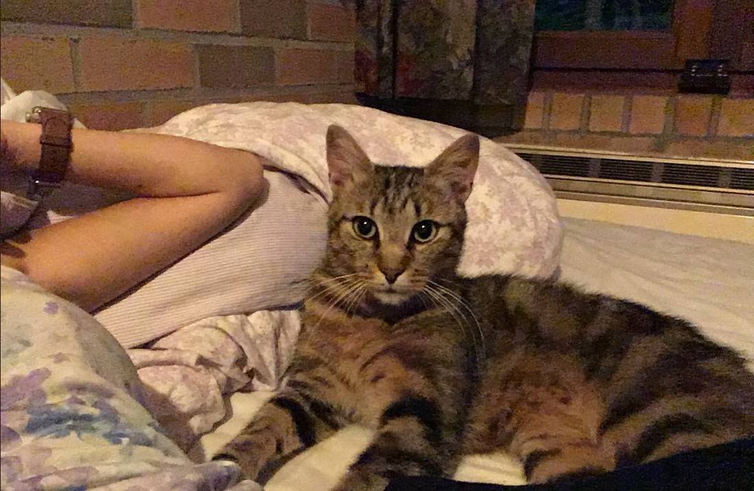 是的,這位不速之客就是一隻虎斑貓,當天Maya和老公一早醒來,伸個懶腰後竟發現床上多了隻貓咪陪睡,但...這喵並不是他們家的孩子啊~家裡根本沒養貓XD