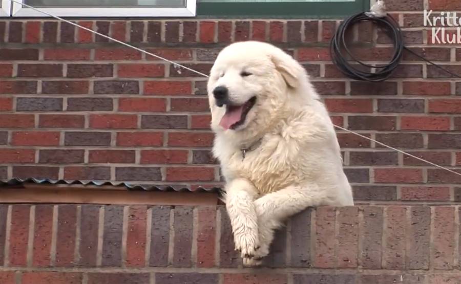 狗狗是一只大白熊犬,體重在130斤左右,從犬種跟外表看來,它跟其它寵物犬也沒什麼區別,但它卻特別討人喜歡,因為狗狗很懂禮貌。