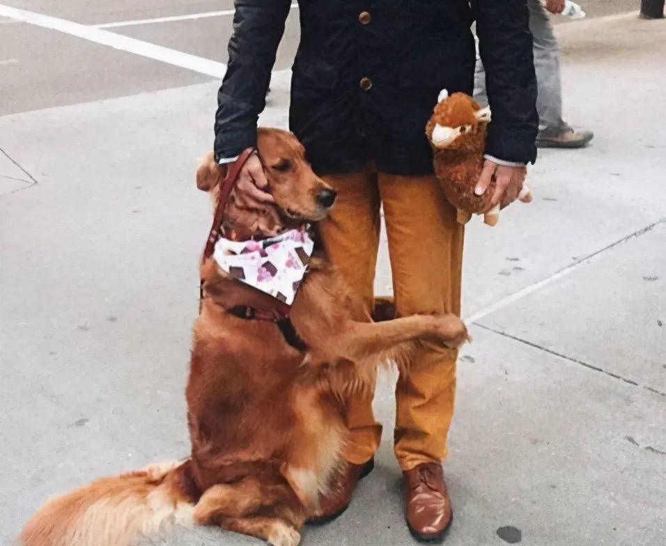 狗狗迎接主人,最常見的方式就是抱大腿,許多寵主應該深有體會,當你下班回家,狗子看到你就會立馬抱著你的大腿,一直不放開,像在說「終于等到你啦」的意思,還要你親自讓放手,它才肯依依不舍的放下。