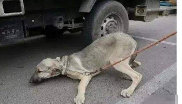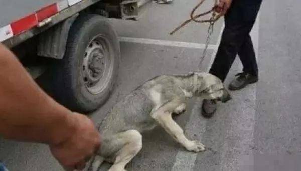 剛開始它死死的纏住主人不放,心里急得都快哭了。 為了逃生它準備鉆進車底不出來,沒想到反被自己脖子上的牽繩給套住了。