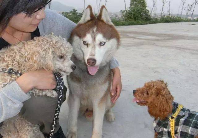 二哈心想:寶寶心里委屈,寶寶心里好苦啊,出門就被泰迪群毆,我不想活啦。