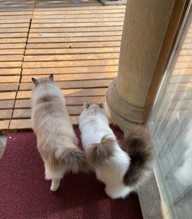 除了三只狗狗老安家還有兩只貓咪分別叫大腚和小腚