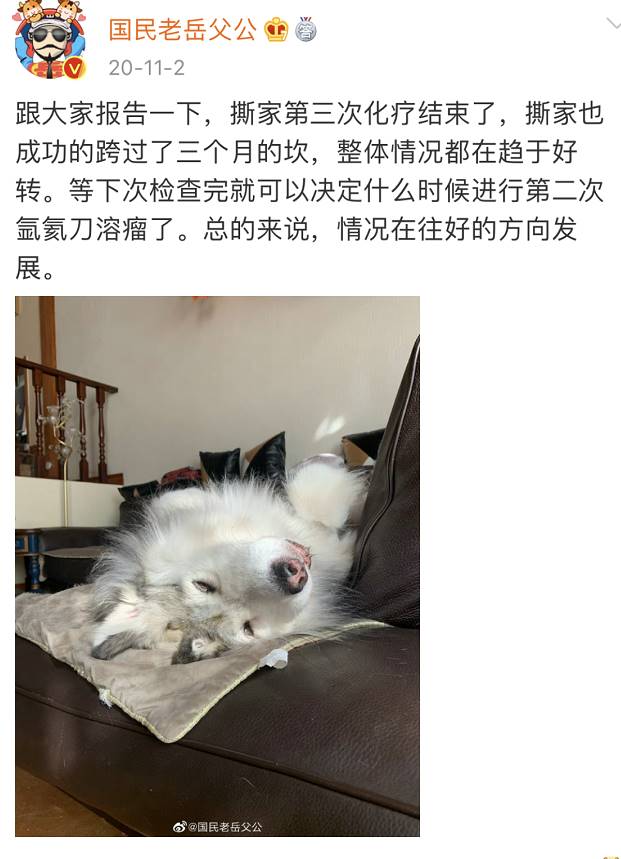 老安公布撕家病情的時候它已經做了第一次手術但當時腫瘤是良性還是惡性還未可知大家聽到這個消息都十分擔心祈禱著撕家能康復、祈禱著腫瘤能是良性但是幾天后老安發了一條只有兩個字的微博腫瘤是惡性的……