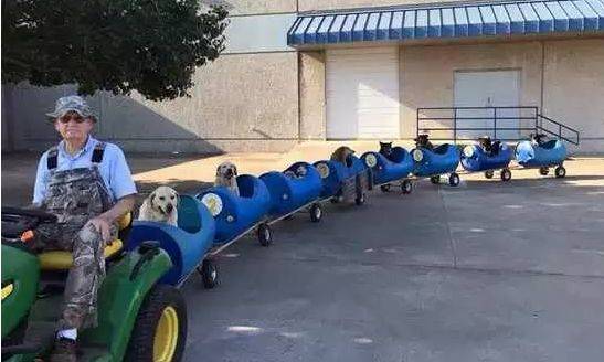 狗狗列車可不止這一種哦,80歲的爺爺尤金·博斯蒂克專門為流浪狗們打造了一台專屬列車,簡直可以用酷炫拉風來形容!