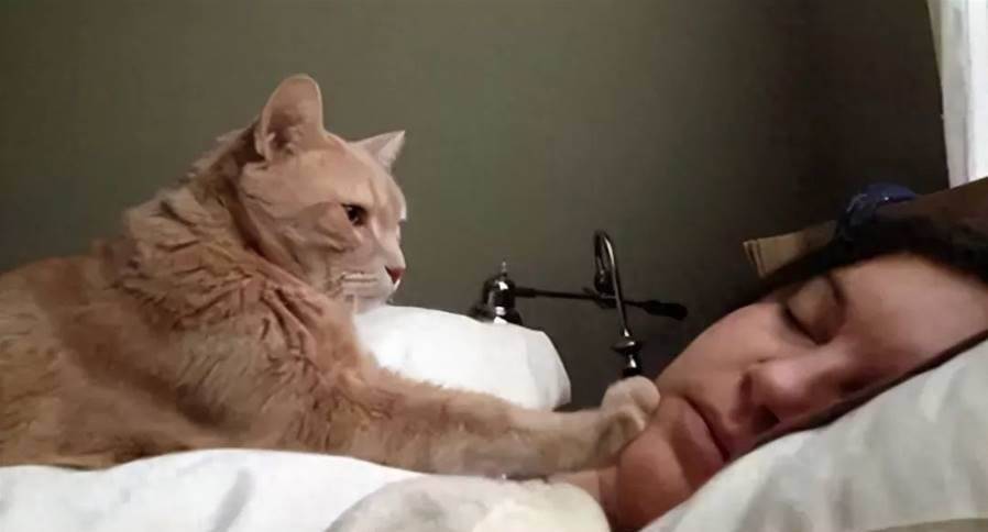 貓咪經常會模仿主人的行為,當它看見鏟屎官睡在床上,那麼自己也有上床睡,貓咪這是把自己當人了。