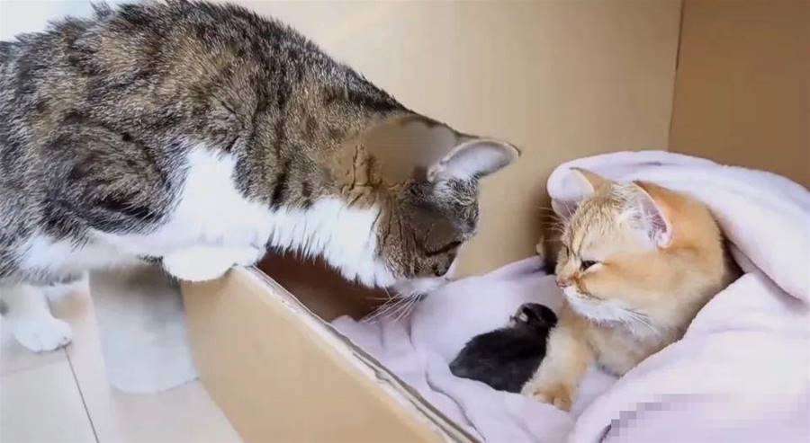 一臉懵的貓媽媽趕緊上前幫孩子舔拭起身體,待處理好胎衣和胎盤后,貓媽媽這才想起給孩子喂奶,看見小奶貓依偎在自己懷里,貓媽媽別提有多開心了,畢竟是自己的獨生子,恨不得每天都守護在它身邊,可今天貓媽媽卻有點郁郁寡歡,原來小奶貓已經出生兩天了,貓爸爸卻還沒有回來看望過,不由得讓貓媽媽感到很心酸。