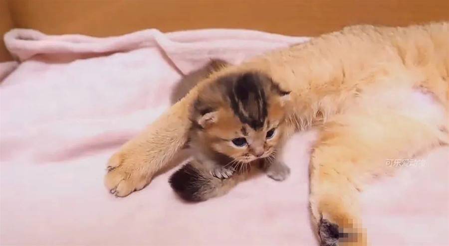 貓媽媽怕孩子會有危險,于是每天都緊緊的把它抱在懷里,不停的舔拭著小家伙,想以此來表達自己對孩子的喜愛,可隨著日子一天天的過去,貓爸爸卻始終沒有再露過面,現在小奶貓也終于睜開了眼,粉粉嫩嫩的身子一扭一扭的,顯得格外的呆萌可愛,其實對于這個獨苗苗,主人也是每天把它捧在手心里,小家伙完全就是繼承了父母的優點,渾身上下都長著金漸層媽媽一樣的金色小絨毛,只有頭頂的黑色條紋來源于貍花貓爸爸,呆萌可愛的模樣,真的是太讓人喜歡了。