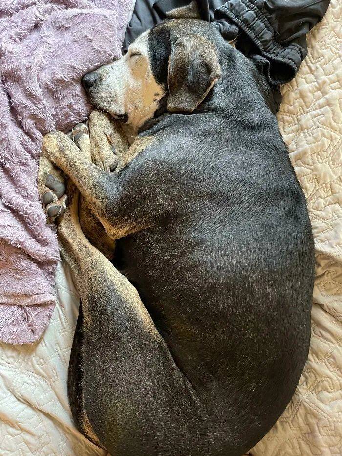 「上周領養了一只狗,這是它昨晚的睡姿...」