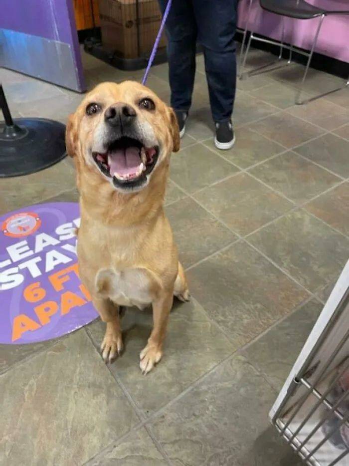 「跟這個渾身都洋溢著幸福的小可愛說再見吧!它今天被領養啦!」