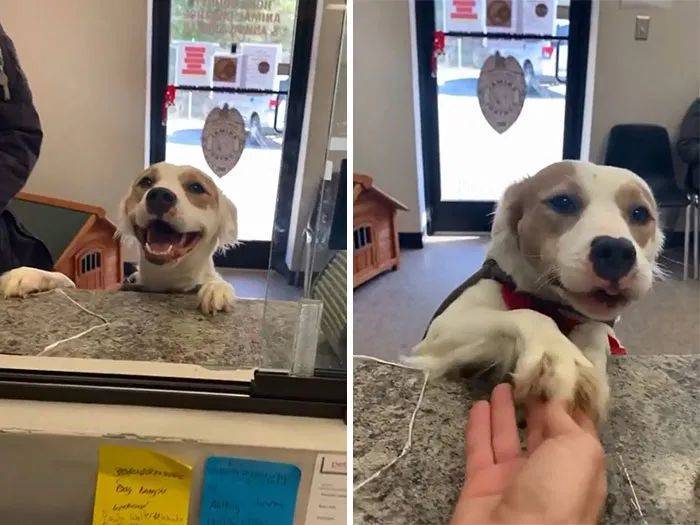 「昨天剛領養的,當它聽到我夸它是好孩子時...」